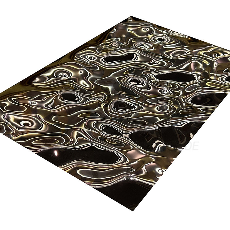 I vantaggi della lamiera in acciaio inox goffrata a onda d'acqua di medie dimensioni con finitura a specchio e rivestimento PVD oro rosa sono numerosi. Il rivestimento PVD offre una protezione superiore contro la corrosione, i graffi e altri danni ambientali. La finitura a specchio le conferisce un aspetto elegante e moderno che sicuramente si distinguerà in qualsiasi ambiente. Il motivo a onda d'acqua aggiunge una texture interessante alla lamiera, creando un effetto visivo unico. La lamiera è anche molto resistente e facile da mantenere, e il motivo a onda d'acqua aiuta a ridurre il rischio di accumulo di sporco e detriti, rendendo più facile mantenere la lamiera al suo meglio. Il colore oro rosa del rivestimento PVD aggiunge un tocco di raffinatezza e lusso a qualsiasi spazio, mentre il motivo a onda d'acqua aggiunge un effetto visivo unico.